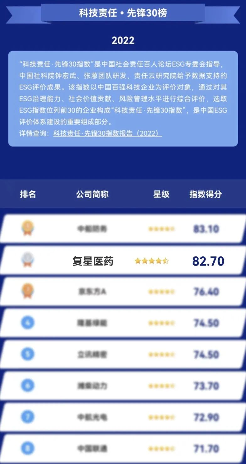 “科技责任·先锋30指数”由中国社会责任百人论坛ESG专家委员会指导,中国社科院钟宏武、张蒽团队研发,责任云研究院提供数据支持。课题组从中证全指4096家(截至2022年5月31日)企业中根据市值规模、研发能力等综合表现筛选排名前100的科技企业,进行ESG评价后形成“中国百强科技企业ESG指数”。同时,选取ESG指数位列前30的企业构成“科技责任·先锋30指数”。该评价体系兼顾了国际趋势和国内实际,是中国社科院研究团队构建本土ESG评价体系的重要成果之一。