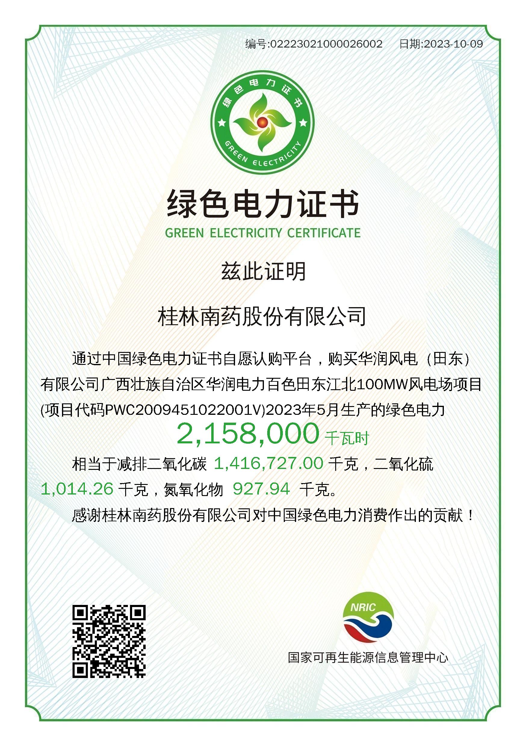 桂林南藥綠電證書,通過購買綠電助力減碳