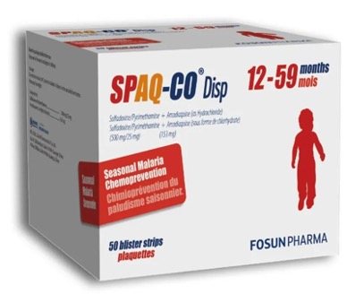 圖4:復星醫藥研發生產的兒童瘧疾預防用藥SPAQ-CO® Disp(磺胺多辛乙胺嘧啶分散片/阿莫地喹分散片組合包裝)