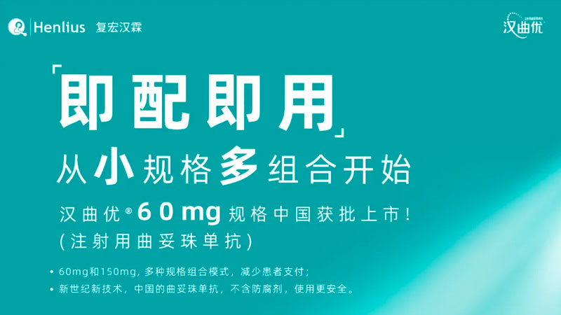 2021年8月17日,複宏漢霖(2696.HK)宣佈,公司於近期收到國家藥品監督管理局(NMPA)核准簽發的《藥品補充申請批件》,漢曲優 ® (注射用曲妥珠單抗,歐盟商品名:Zercepac ®) 新增藥品規格(60mg/瓶,不含防腐劑)的補充申請(sNDA)正式獲NMPA準予。 此次於國內新增60mg/瓶藥品規格後,患者有望通過搭配使用不同規格的漢曲優 ®, 達到更靈活的用藥管道。 漢曲優 ® (150mg/瓶)為複宏漢霖參照中國和歐盟生物類似藥相關法規開